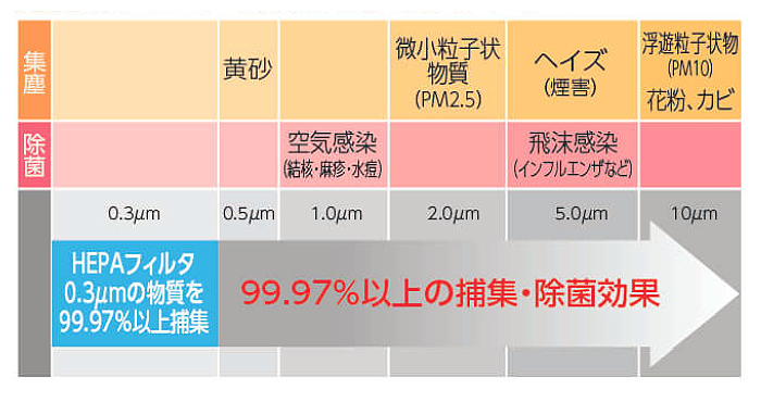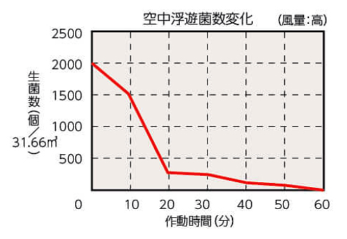 | ■特長 ●「人がいるとき」吸引空気清浄機能で浮遊菌・ニオイ・ちりを除去 室内の空気を吸気~上方吹き出しで循環させ浮遊粉じんの集塵と浮遊細菌やウイルスを捕捉し、装置外部への放出はありません。装置内部で生成したオゾン・HEPAフィルタ・触媒により浮遊菌を除菌し、さらに浮遊臭も強力に脱臭します。ファンの先にはイオナイザーがあり、マイナスイオンを室内に放出し、快適空間を創り出します。 ![]() ●「人がいないとき」オゾン燻蒸機能で付着菌・付着臭を除去 オゾン発生器から小ぞとマイナスイオンを生成、放出し、無人の室内に充満させる(くん蒸する)ことにより、室内の不快臭・浮遊菌・付着菌を脱臭・除菌し快適空間を創り出します。 オゾンくん蒸後は自動的にオゾン分解機能が働き、しかも薬剤と異なり残留毒性がないので安心してご使用いただけます。 ![]() ●使いやすさが違う 見やすい大型液晶モニタ作動状況(室内空気除歯中等) や機能選択状況(モード、風量、時間等)は文字と大型LEDで常に確認でまきす。 ●新型オゾナイザを搭載 医療市場において安定したオゾン発生量を確保し、長時間のオゾン発生にも耐えられる無声放電・沿面放電併用型のオゾナイザを更に進化させ搭載しました。 ●除菌力が違う オゾンが隅々まで強力除菌! フッ素につぐ強い酸化力で除菌します。 細胞の破壊により細菌を不活性化するため、酸性菌ができにくい。(薬剤や抗生物質は最近代謝を阻害して不活性化している) 拡散効果で隅々まで除菌できます。 常温常湿で使用するので、加温・加湿の前処理や中和・洗浄・清拭の後処理が必要なく、しかも容易に酸素に分解できます。 <オゾン除菌試験データ> ![]() ●脱臭力が違う オゾン・触媒・脱臭フィルタ・マイスナイオンで強力脱臭! オゾンくん蒸により、付着臭にオゾンが直接アタックし、短時間で分解脱臭します。 空気の吸引時は、オゾン+触媒+脱臭フィルタ+マイナスイオンで最強の脱臭を実現します。 ![]() ●細菌・ウイルスP M2.5対策 飛沫感染対策 長時間空中に浮遊するウイルスは吸引空気消浄機能により、静電大容量HEPAフィルタ(クリーンルームで使用)に捕捉されま。捕捉されたウイルスは抗ウイルス剤とオゾンの不活化効果により除去します。 接触感染対策 セキやクシャミにより付着したウイルス(机・電話・ボールペン・ドアノブ等)は感染源となります。オゾンくん蒸機能により、付着したウイルスにオゾンが直接アタックし不活化します。 ![]() ●集塵力が違う 高効率の集塵力 大容量静電式HEPAフィルタを採用。MRSA、結核菌などの一般細菌やウイルスなどを捕捉し、フィルタにオゾンを掛けることにより除菌します。(フィルタ増殖による2次感染を防止) 5m3/分の大風量で清浄スピード高めます。 ![]() ![]() ●熱流体解析設計 流体解析シミュレーションを駆使し、設置が予定される場所の最適な吸込み・吹き出し位置や風量、オゾン発生量などを設計に取り入れ生まれた製品です。 室内に放出したオゾンは室内どこでも均一な濃度になります。 ![]() ■その他機能 ●ストッパー付キャスターを採用。移動がスムーズになる他、固定することで安全性を確保しました。 ●転倒防止対策を施しています。(チェーン付) ●操作はすべてリモコンで行います。 ■仕様