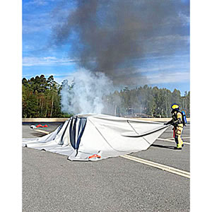 | ■特徴 ●容易に展開、使用可能 ●トンネル内、地下駐車場など、水源を確保しにくい場所で効果的 ●近隣への延焼防止 ●放水による水損の軽減 ●使い捨てタイプと複数回(30回程度) 使用可能な2タイプ ●トンネル内、地下駐車場、高速道路など、水源を確保しにくい場所で効果的 ●隣家への延焼防止にも対応 ●2人で容易に展開、使用できます。 ●メンテナンスフリー ■燃えている車両に覆うだけ。 ![]() ![]() ■2人で簡単に展開出来ます。 ![]() ■使用方法