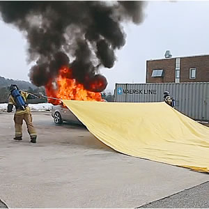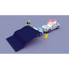 ブランケットを広げて火災車両を覆うだけ。 繰り返し使用可能タイプ(約30回使用可能)、使い捨てタイプの2種類 数秒(10~20秒)で消火。 扱いやすいミニタイプはこちら |