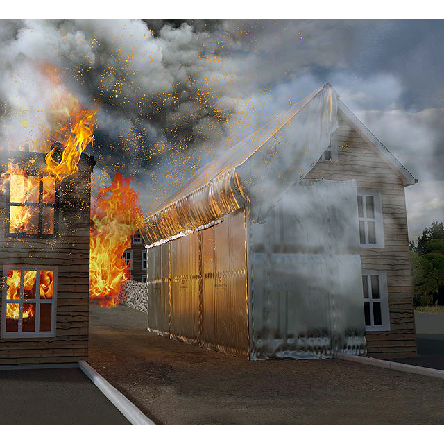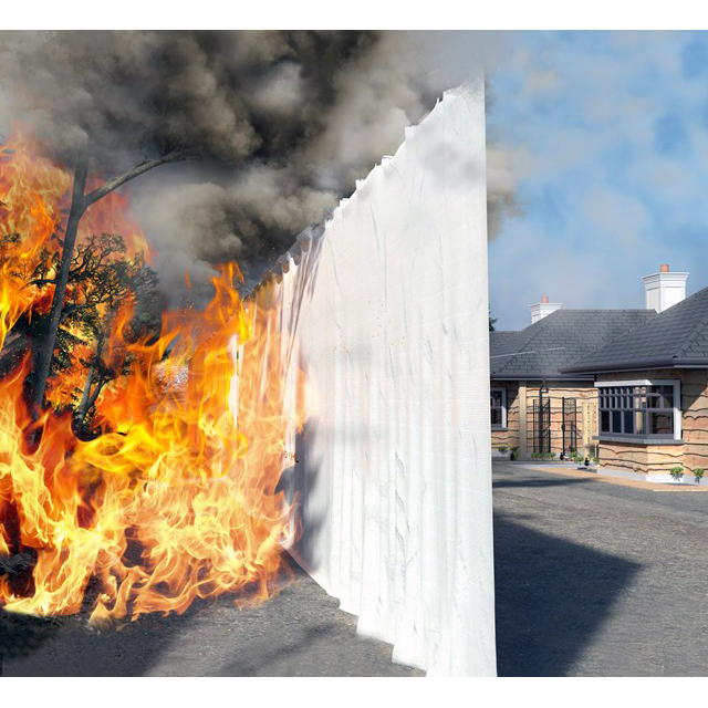 | ■特長 ●M3098TFB-4HNはあらゆる火からの放射熱の98%をブロックし、M3098TFB-4FNはあらゆる種類の火からの直火と放射熱の80%を遮断します。 ●M3098TFB-4HNとM3098TFB-4FNは消火活動が終わるまで建物を保護します。 ●建物、ボート、その他の施設などに取り付けるだけ。または、ワイヤーから吊るして耐火壁として使用します。 ●両シートとも繰り返し使用できます。 ■使用方法 ![]() 放射熱遮断シートは建物に取り付けたり、耐火ロープと鋼線から数分で吊るしたりできます。それらは耐火壁を形成するために3つの方法で吊るすことができます。 ・ カービンフックを使用してシートを金属溝から吊るす ・ 壁にシートを釘やステープルで打ち込む ・ 耐火ロープまたは鋼線を使用して耐火バリアを作成する ■使用例