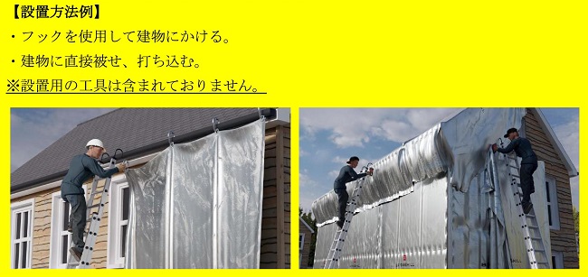 建物と資産を放射熱から保護するM3098TFB-4HNと、火炎から建物を守るM3098TFB-4FN。 | 放射熱遮断シート(4m×6m) 品番 M3098TFB-1S68N 価格は下記をご覧ください。 |