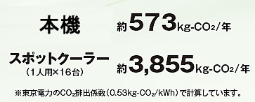 | 三次元の風で、快適な室内環境をつくる省エネ大型ファン そよ風を思わせるやわらかな空気の流れをつくります。 空気を冷やすことで、体から熱を移す冷房とは違い、汗が蒸発する際に熱を奪う気化熱効果により「体感温度」を下げます。 体温調整機能を活かすことで、体への負担を抑えます。 ![]() ■特長 ●超静音 ノイズレベルはモータより2m離れた場所において、50dB以内に抑えられています。 一般的なスポットクーラーのノイズより小さい値です。 ●効率性 専用のモータの開発によりインバータとの併用化で効率性が向上しました。 これにより大規模施設である物流や倉庫など、さまざ作業環境で活用されています。 ![]() ●美しい外観 最大直径7.3mの大きな羽根は、圧迫感を感じさせない流麗な美しさを誇ります。 やわらかな空気の流れをつくり、心地好さと安心感を提供いたします。 ![]() ●環境性 施設の環境に合わせて運転速度を調節することができます。効率がアップしたことで、人ばかりでなく、湿気、サビ、カビ、変性などへの製品管理の要件にも対応します。 ![]() ●体感温度を下げて、熱中症対策 4方向への風の流れで気化熱効果が高まります。 柔らかな風は、クーラー病の心配もなく、体温を急激に下げることがありません。 4方向への風は、全身にあたり、快適に感じるだけでなく、汗を最大限に蒸発させ、体感温度を下げてくれます。 体感温度が下がることで、熱中症のリスクが軽減されます。また作業効率、生産性の向上にもつながります。 ●コストを下げても、大風量の空気循環 10年間の電気料金比較(電気料金16 円/kwhで計算) 同じ範囲の冷却効果を従来のスポットクーラーと比較した場合、イニシャルコストばかりでなく、ランニングコストにおいても大きな差がでます。 開放された広い空間では、効率性、経済性においても大型シーリングファンが他を圧倒します 。 わずか1.5kWの消費電力で、約1000㎡を超える面積をカバーします。 快適な室内環境を考慮した場合、直径7.3メートルの大型シーリングファン1台に対して、スポットクーラーなら16台相当が必要になります。また電気代に換算すると、1台で約1/6の省エネ効果があります。 ●CO2 排出量を下げて、環境効率をアップ 月々の消費電力においても、スポットクーラの運転時に比べCO2排出量も大幅に削減されます。