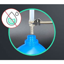 ●充填完了済みのボトルを降ろすとシステムは自動的にクリアしてリセットし、次の空のボトル載せると自動的に次の充填を開始します。