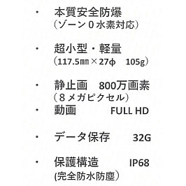 国内防爆検定取得の無線式小型ハンディカメラ | 防爆Wi-Fi無線携帯ハンディーカメラ(録画機能付) 品番 M3143WF-101T |