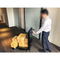 | ■特長 ●電動ホイールが重い荷物を運ぶ時に作動し、簡単に運べるようにアシストします。 ●ハンドル部に高感度センサーを搭載しているため、軽いタッチで繊細なコントロールが可能です。 ●前輪駆動のアシストホイール搭載です。 ●後輪にはストッパーだけでなく、直進のみの動きに制動するペダルがあり、狭い通路などの走行の際に早く安全な走行が可能です。 ●付属のACアダプターでの充電が可能です。 ●ハンドル部分から手を放すと自動で停止します。 ●後輪自在キャスターのため狭い場所での旋回が可能です。 ●高効率バッテリーモジュール搭載により、未使用時は自動的に電源をオフにします。 ●4時間充電で約7時間稼働可能です。 ■用途 ●力の弱い人でも、倉庫作業に。 ●病院や図書館などの繊細な動きを、静かに一定の速度で、大きな力を使わずに台車を使う場面で。 ●物流倉庫などの床が平面で、複雑な動きをする場所に。 ■側面図 ![]() ![]() ![]() ![]() ■使用例 ![]() ![]() ■寸法図 ![]() ■仕様