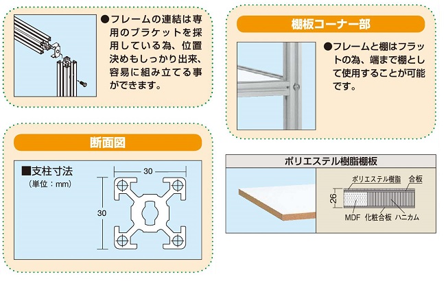 見た目にも美しいアルミフレームを採用した5段ラックです。 スチール製に比べ20%軽量化。 |
