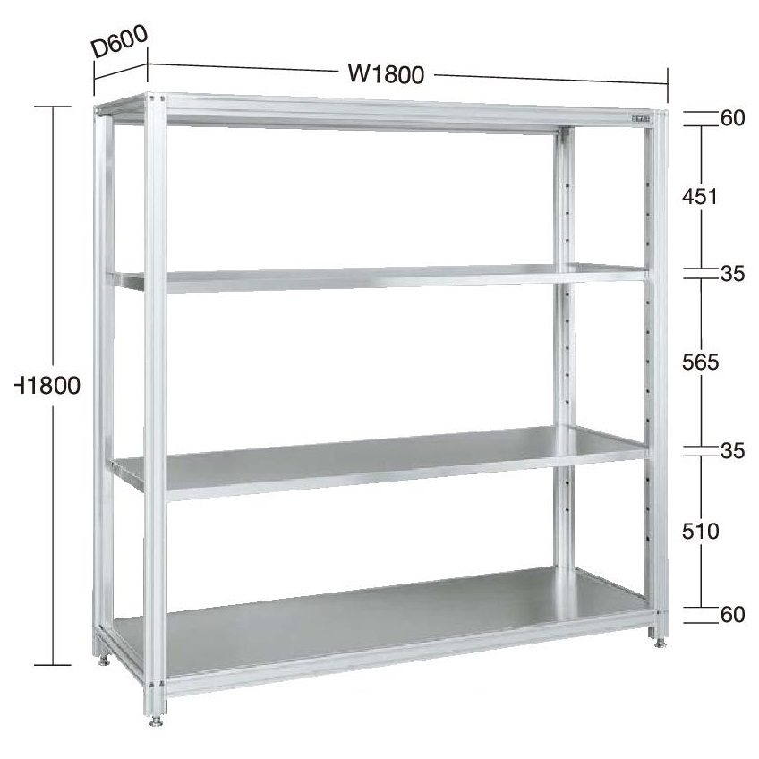 アルミ軽量ラック4段(W1800×D600×H1800) 品番 M350AL70R-1864 廃番 |