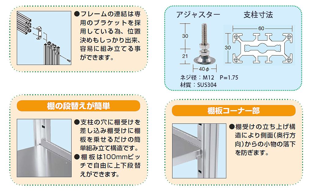 | アルミ軽量ラック4段(W1800×D600×H1800) 品番 M350AL70R-1864 | 【詳細表示】 | |||||||||||||||||||||||||||||||||||||||||||||||||||
