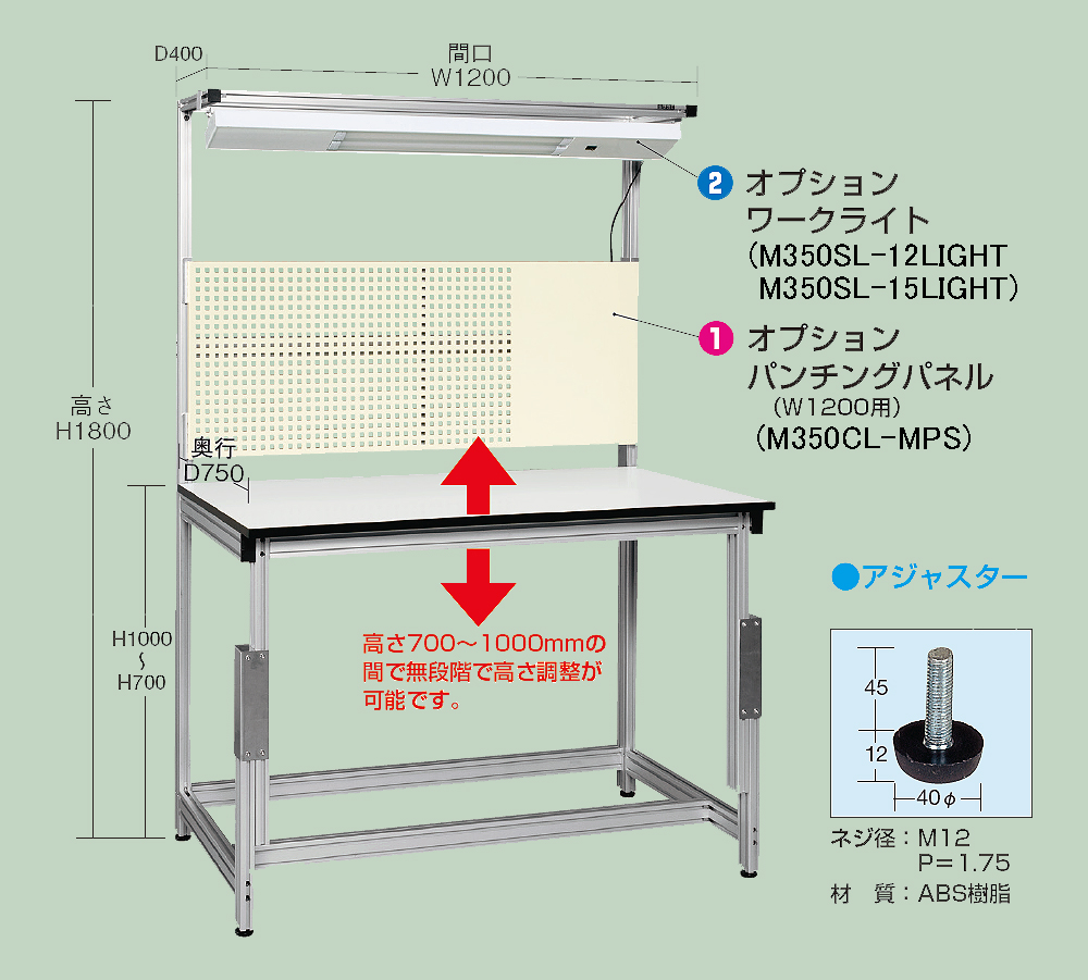 ●アルミ伸縮セル作業軽量作業台(オプションパンチングパネル(W1200用))