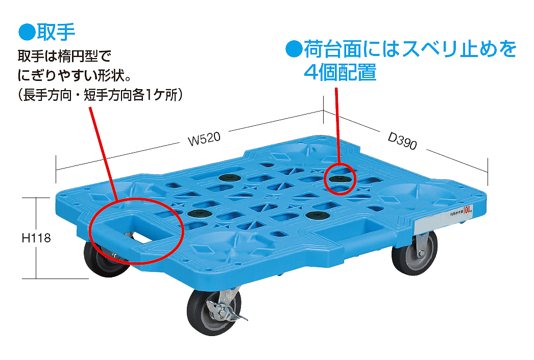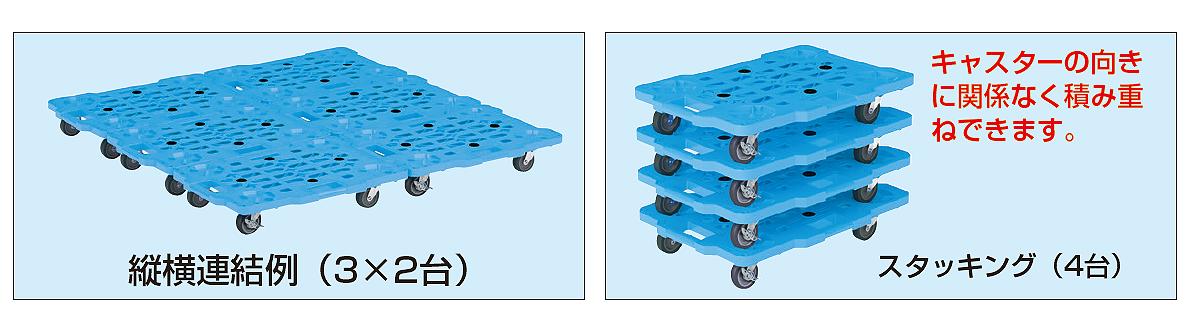 メッシュ構造の超軽量平台車でストッパー付 | 連結メッシュ樹脂平台車(ストッパー付) 品番 M350CR-M400EKBSK 価格は下記をご覧ください |