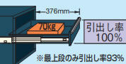 | ■オールロック機構 全ての引出しが同時にロックされ、大切な工具・部品を守ります。 ![]() ■ラッチ機構 引き手を引くだけで自動的にストッパーが外れ、 スムーズに引き出しが開けられます。 ![]() ●ボールスライドレール 開閉が非常にスムーズで100%引出すことができ、 収納物の出し入れが容易に行えます。 ![]() ■背面は足元を背板と揃えてスッキリしています。 ![]() ■引出し代・均等耐荷重 ![]() ■引出しの仕切仕様 ![]() ●タテ・ヨコ仕切板はピッチ50mmで調整可能なので自由に仕切ることができます。 ●H80・160mm引出しに仕切板を使用する場合は別途受板セットが必要となります。 ●キャスター:120φゴム車 ■H480mmツーリング引出し ツーリングはH480mmの引出しに収納が可能です。 ![]() ■転倒防止脚 ワゴンの転倒対策として正面側に脚を伸ばしています。 ![]() ■タイプ ●引出し3段仕様 ![]() ●引出し4段仕様 ![]() ■H80・160mm引出し有効寸法 ![]()