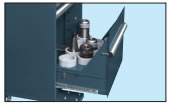 フルストロークのツーリングキャビネットワゴンが新登場 大容量の引出しで刃先の長い刃物でも簡単。 耐震構造2重安全装置内蔵! 均等耐荷重 引出し1段当り:70kg ワゴン1台当り:400kg ※仕切板・受板セットはオプション品となります。 |