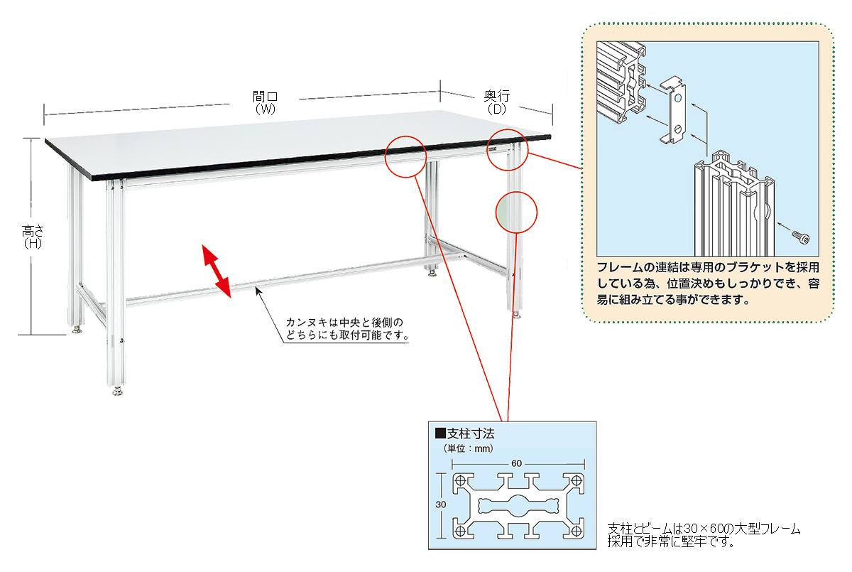 見た目にも美しいアルミフレームを採用した作業台です。 改正RoHS10物質対応 |
