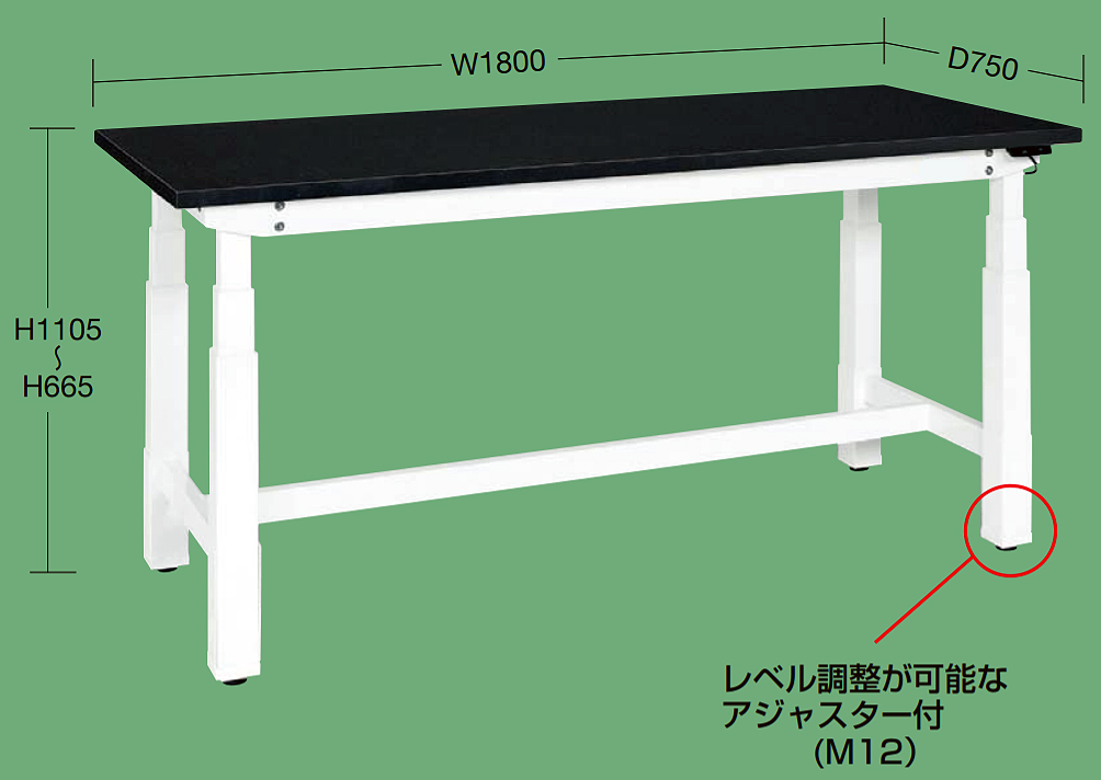 立ち作業、座り作業、体格に合わせて調整可能なアクリル系樹脂天板の電動昇降作業台 | 重量電動昇降作業台アクリル系天板 品番 M350LK-127CAWS 廃番 |
