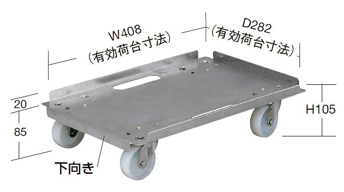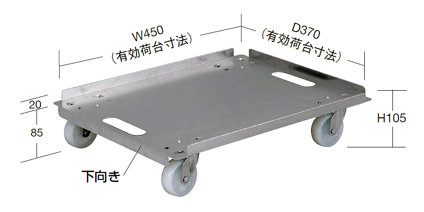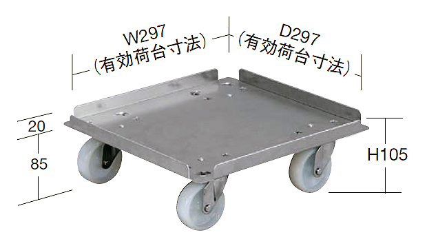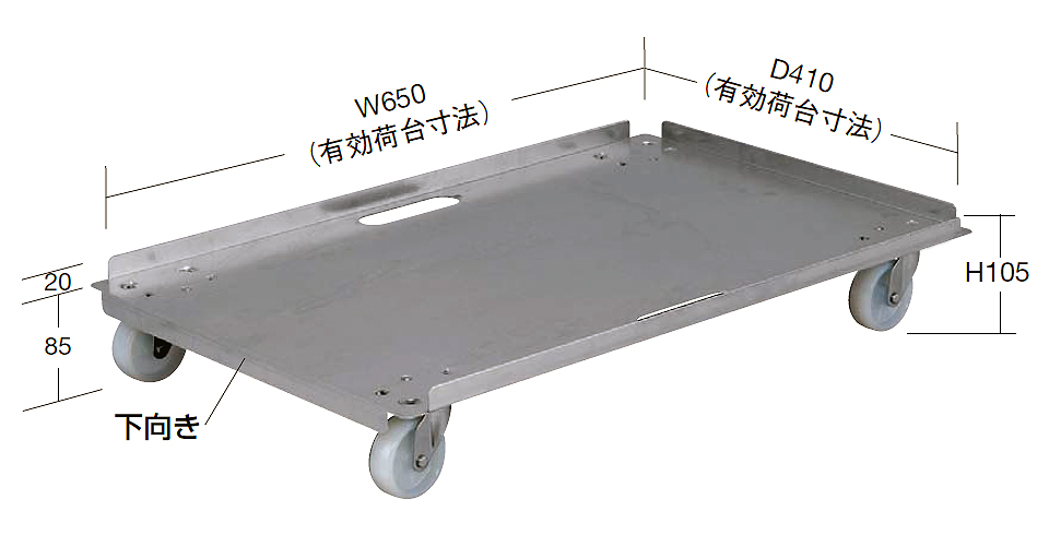 | ■特徴 ●三方コボレ止め構造の為、荷物の積み降ろしが容易にできます。 ●本体材質 :A5052-H32 ●キャスター: 65φナイロン車オール自在(スチール金具) ![]() ●ご要望に応じて別寸や下記荷台形状に変更できます。メールかFAXにてお問い合わせください。(最小ロット10台以上) ※荷台寸法は内寸にてご指示ください。 ![]() ■仕様