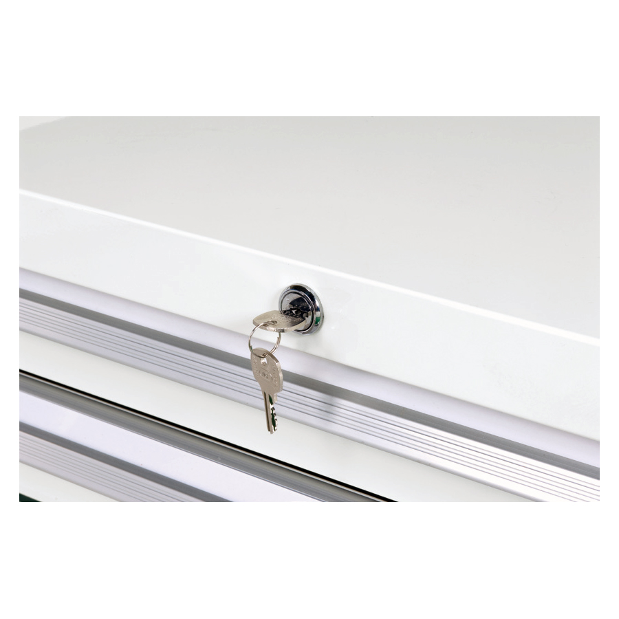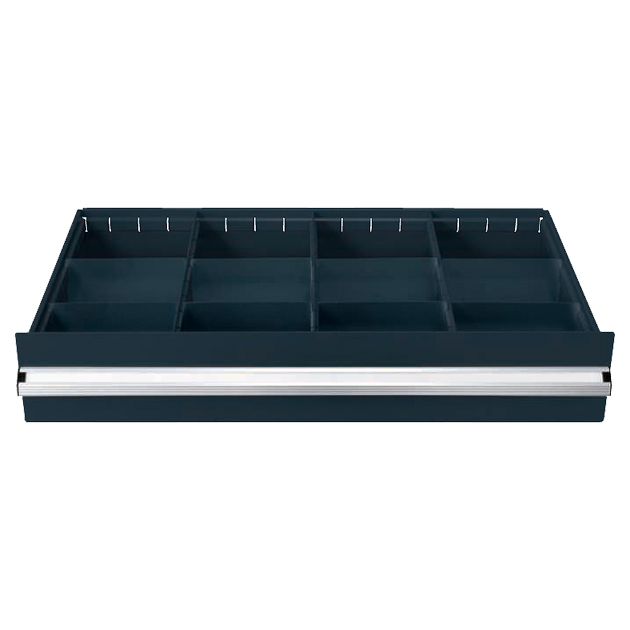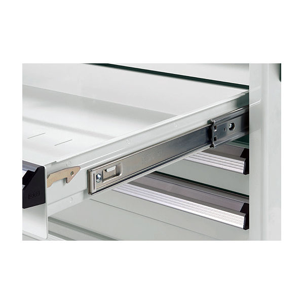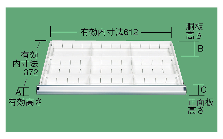 | ■特長 キャビネットワゴンボールスライドレール仕様 耐震構造 2重安全装置内蔵 粉体塗装 ![]() ●オールロック機構 全ての引き出しが同時にロックされ、大切な工具・部品を守ります。 ![]() ●ラッチ機構 引手を引くだけで自動的にストッパーが外れ、スムーズに引出しが開けられます。 ![]() ●ボールスライドレール 開閉が非常にスムーズで100%引き出すことができ、収納物の出し入れが容易に行えます。 ![]() ■引出寸法 ※仕切り板・棚受けセットはオプションです。 ![]()