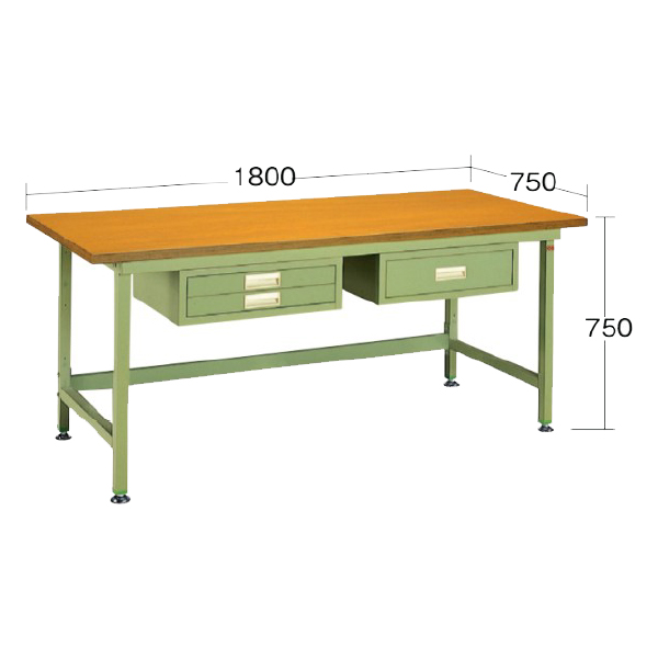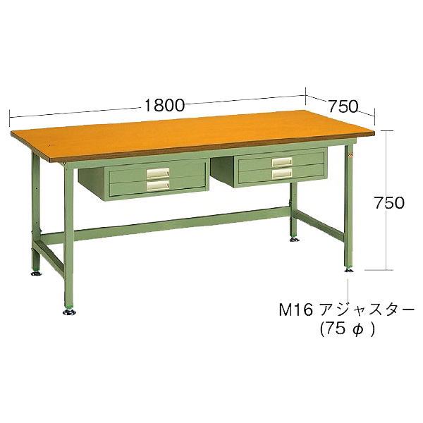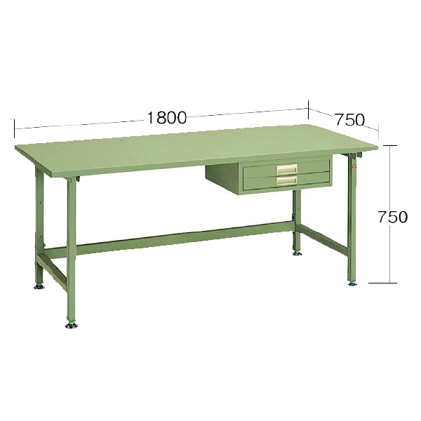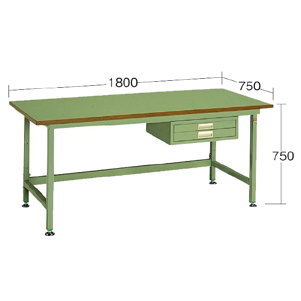 天板が3種類から選択できる引出し付中量作業台。 | 中量作業台(スチール天板/2段引出し1ケ付) 品番 M39B-S1275 価格は下記をご覧下さい |
