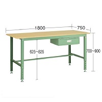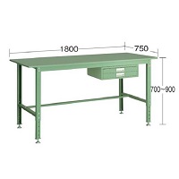 軽量作業台(高さ調節式)、高さ700~900mmまで、50mmピッチで高さ調節ができます。 引出しボックスが任意の位置に簡単にスライド。 |