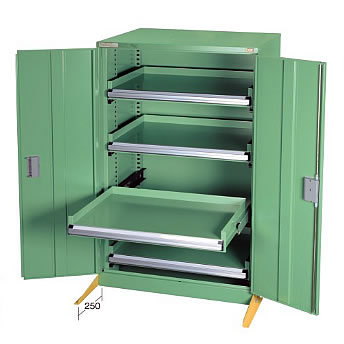 数台でご利用(並列)の際は、転倒防止上必ずボルトで連結して下さい。 ※危険防止の為、引出しを2枚以上同時に引き出さない下さい。 ![]() ■寸法図 ![]() ■仕様
