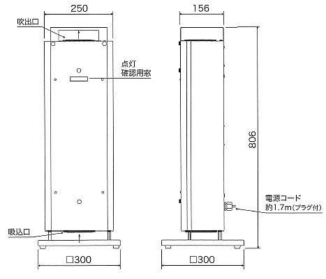 | ■特長 ●強力な除菌力 強力な紫外線で細菌(枯草菌芽胞)を99%除菌します。 ●安心・安全 紫外線が外に出ない構造のため人や、その他室内の品物に影響を与えません。 また、紫外線除菌は薬品と異なり耐性菌を作りません。 ●メンテナンスが簡単 フィルター除菌方式と異なりメンテナンスが簡単。 連続使用で約1年近くランプ交換が不要 ![]() ■用途例 ●病院・介護施設 病室・待合室・機械室・更衣室などの除菌 ●食品工場・レストラン 空間に浮遊するカビ類(胞子)、細菌類の発生防止 作業場、厨房細菌、調理台・機械類への落下防止 ●学校 教室・給食・調理室の浮遊菌・落下菌防止 ●電子工場 クリーンルームなどの浮遊菌・落下菌防止 ●その他 ホテル等の宿泊施設、学習塾、スポーツクラブ、事務所など ![]() ■寸法図 ![]() ■仕様