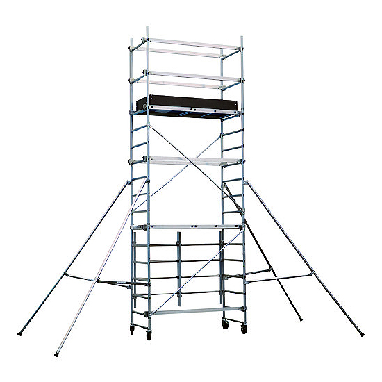 軽量・組立簡単!効率性の高い移動式足場。 1段目は折りたたみ式のため、すばやく設置が行えます。 収納場所をとらない軽量コンパクト設計で屋内・屋外を問わず気軽に使用できます。 |