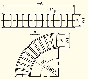 ■仕様 (mm) ABS樹脂ローラーカーブコンベヤ(小物軽荷重)Φ20