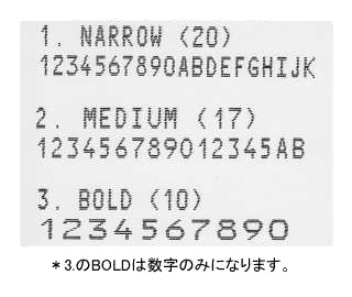 ●各行に最大 Narrow 20文字、Mediam 17文字、Bold 10文字、画面上の1-25のフォーマットに登録が出来ます。