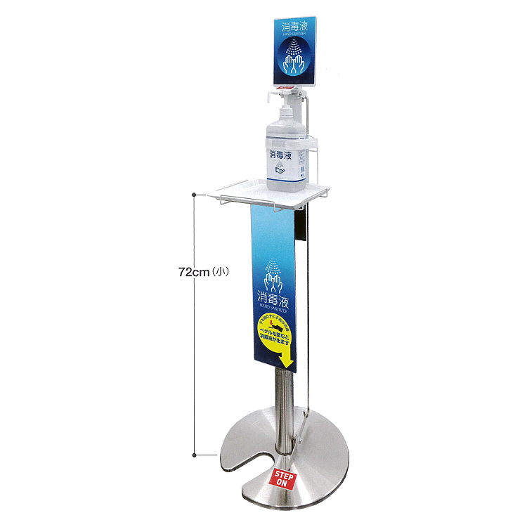 スマートなフォルムで場所をとらないステンレス製スタンドの足踏み式消毒台と、置くだけで使える卓上型の消毒台。 ソーシャルディスタンシングの備えにぴったりのアイテムです。 ※消毒液および消毒ボトルは付属していません。 |
