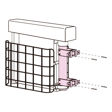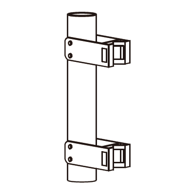 ②丸または角ポールをはさみ、向きを決めて取付金具M669MB-S123KP(2ヶ)を付属のボルトで固定してください。