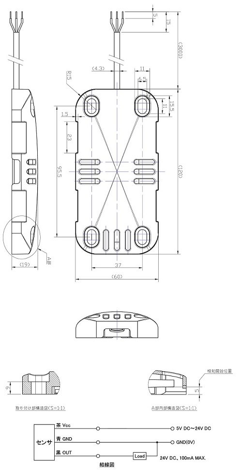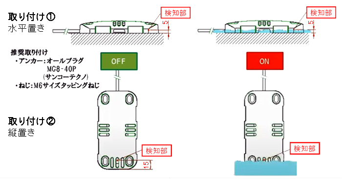 ■寸法図![]() ■取付方法と検知位置 ![]() ■仕様