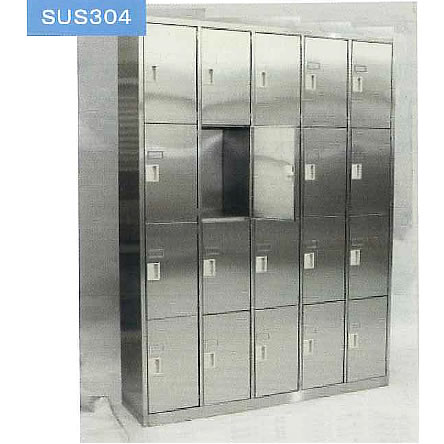ステンレス製(SUS304)の長靴用ロッカー 左図はM913K23-54-8S |