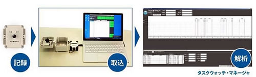 | 機械式に代わるデジタル稼働記録装置。 除雪機や車両系建設機械等の運行管理や稼動記録を加速度センサーで克明に記録します。 本体はマグネット足付の防塵防水ケースに収納されており、「開始」「停止」スイッチで簡単に操作ができます。 記録したデータは標準添付ソフトウェアで建設作業日報が自動作成できます。 機械式タスクメーターと同様に機械の振動を記録します。 ![]() ■特長 ●従来のタスクメーターと同様に機械の振動を記録できる タスクメーターの様な煩わしい記録紙の交換やグラフの読み取りの手間が無く、タスクウォッチからUSBで専用ソフトに取り込むだけで瞬時に機械作業日報が作成できます。 ![]() ●3軸加速度センサーによる電子式で振動を記録できる 物流業界では事実上の業界標準と言われる輸送環境記録計「MC7GM-Rシリーズ」の3軸加速度センサーで培った振動衝撃記録技術を搭載しました。 ![]() ●強力マグネット足で機械車両に簡単に取り付けできる 防塵防水ケース(IP64)に収納された記録装置は底面4ヶ所の 強力マグネット足で機械車両に簡単に取り付けできます。 ●最大60日間電池交換不要で記録できる 単3アルカリ乾電2本で約60日間連続動作します。(動作環境、電池性能で異なります) ●「開始」「停止」のスイッチ操作で簡単に使える 防塵防水ケースのセレクタスイッチで記録の開始や 記録の停止の作業が簡単にできます。 ●ソフトウェアで機械作業日報が作成できる 標準添付ソフトウェアで簡単に機械作業日報が作成できます。 ![]() ●記録データの改ざん防止機能が付いている ソフトウェアは記録データの改ざんをブロックします。そのため、正確なデータ収集ができます。
