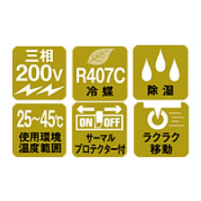 ●強風・冷風を兼ね備えた大風量スポットクーラー ●大型倉庫、大型工場、コンテナの積み下ろし作業等、広範囲の環境へ幅広く対応します。 |