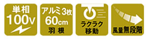 より遠くまで送風を可能にした60cm大型ファン。 移動に便利なキャスター付き |