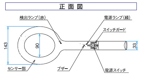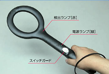 | ■用途 ●所持品検査での凶器発見 ●製品に混入した金属片の検出 ●体感器検出などのゴト師対策 ●リサイクル品の中の金属検出 ●MRI、CT検査前のアクセサリーなどのチェック ![]() ■特徴 1.金属の検出をブザーもしくはバイブレーションでお知らせします。 電源スイッチの切替でブザーモード/バイブレーションの選択ができます。 バイブレーションモード時に金属を検出すると、検出ランプ(赤)とバイブレーションでお知らせします。(※) 音を出したくない環境や音が聞こえにくい環境でのご使用に最適です。 ※バイブレーションモードを選択すると、ブザーは鳴りません。 ■モード切替 ●電源スイッチ 金属を検出したときに、ブザー/バイブレーションのどちらでお知らせするか、電源スイッチの切替で選択できます。 希望するモードで電源を温にして下さい。 ![]() ![]() 2.コイル誘導式のハンド式金属探知器です。 3.すべての金属を検出します。 アルミニウム、ステンレス、金、真鍮などの非磁性体、鉄などの磁性体など、すべての金属を検出します。 4.スイッチオンですぐに使えます。 5.検出時の赤ランプは使用時に自然と目線がいくリングの近くに設けてあり、視認度が高くなっています。 6.感度は3段階で設定できます。 簡単な操作で検出度を3段階にセットできます。 設定感度は電源スイッチをオンした時、検出ランプ(赤)の点滅とブザーもしくはバイブレーションの動作回数で確認できます。 ※工場出荷時は最高感度(3)に設定されています。 →電源スイッチをオンにすると、検出ランプ(赤)とブザーもしくはバイブレーションが3回動作します。 7.スイッチは不用意にオフにならないようにガードがあります。 ![]() 8.バッテリーは、市販の9V角形乾電池(006P等)を使います。 定格電圧が8.4Vの充電式乾電池も使えます。 9.電源交換の時期をお知らせします。 バッテリーアラーム(電源ランプ(緑)、検出ランプ(赤)、ブザー/バイブレーション)は2段階で電池交換のタイミングをお知らせします。 10.日本製です。 高性能高品質です。 落下などによる故障にも、輸入品と違いスムーズなメンテナンスが可能です。 ■銅管の検出距離 ![]() ■外観図 ![]() ![]() ■仕様
