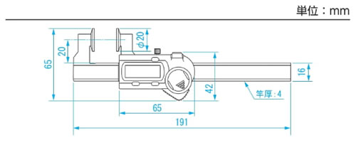 | ■特長 ●φ20mmの円盤型測定子で、ワイヤーロープの直径測定が安定して行えます。 ●別売のBluetoothBOXに対応 ●ホールド機能付 ●オートオフ機能付(約20分) ![]() ■用途 ●ワイヤーロープの実測径測定 ■材質 ●ステンレス ■電源 ●CR2032(リチウム電池)テスト用1個付属 ■寸法図 (mm) ![]() ■仕様
