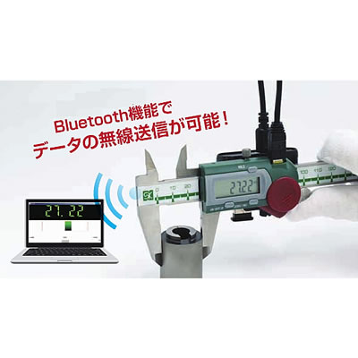 ■オプション ●Bluetooth機能搭載パソコン・タブレットと接続し、無線データ通信が可能 ※Bluetooth機能でも、市販のBluetooth用USBドングルを購入頂ければ、データ通信可能です。 ●ドングル付け替えにより、世界各国で利用可能 ●付属ソフトでExcelなどへの測定値出力、合否判定が可能 ●対応ノギスに取り付けて、測定値をパソコンへワイヤレス送信するこが可能です。 ![]() ![]() ■仕様