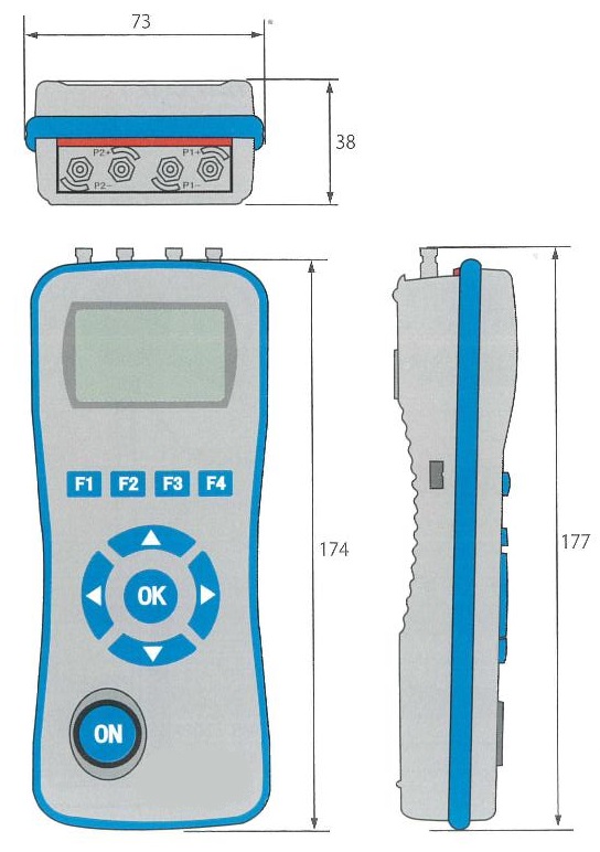 正圧・負圧・差圧の計測、ゲージ圧計測、差圧計測に。 データロガやデータのプリントアウトも可能なポータブル・デジタルマノメーターです。 最大値・最小値の表示が可能。 |