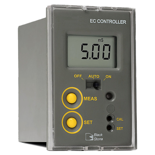 | 農業や工業向けのECミニコントローラー(指示調節計)は、EC(導電率)を常時管理する目的で装置に組み込むタイプの製品です。 ポンプや制御装置に接続し、設定したセットポイントを下回った時(MF2MCR-9833171H/9833172H)、もしくは上回った時(MF2MCR-9833271H)に信号を送ります。 小型で設置スペースを取らないことも特長です。 ![]() ■特長 ●全面と背面パネル。電極、電源、接点などはネジ留め式端子を介して背面パネルに接続されます。 ![]() ●調整可能なドライコンタクト投与リレー 読み取り値がユーザーがプログラム可能な設定ポイントを下回ったとき、もしくは上回った時にアクティブになる投与リレーが搭載されています。 ●プログラム可能な過剰摂取保護 安全性を高めるため、ミニコントローラーは、指定時間内に設定値に達しない場合に投与リレーを停止するようにプログラムできます。過剰投与タイマーは5分から30分まで設定可能、または無効にすることもできます。 ●リレー制御オーバーライド スイッチを切り替えるだけで、ミニコントローラーのリレーを無効 (オフ) にしたり、制御状態にしたり (自動)、または手動操作 (オン) 用にアクティブにしたりすることができ、投与ポンプのプライミングに便利です。 ●マルチカラーLEDインジケーター マルチカラーLEDインジケータにより、オペレーターはコントローラの状態をすぐに確認できます。 ・緑 = メーターは測定モードにあり、読み取り値は設定点を下回っています。 ・オレンジ/黄色 = 読み取り値が設定点を超えており、リレーが作動しています。 ・赤色の点滅 = 最大投与時間を超えた場合などのアラーム状態を示します。 ●ヒューズ保護された投与接点 リレー投与接点は最大 2A の負荷定格を持ち、ヒューズで保護されています。 ●ラベル付き終端接続 クイック接続端子ブロックには明確なラベルが付いており、電源、導電率プローブ、リレーに簡単に接続でき、投与ポンプ、バルブ、可聴アラーム、ライトの操作に使用できます。 ●インライン取り付け用 1/2" NPT オスネジ付き電流測定プローブ* 様々なケーブル長で利用可能な導電率プローブ(MF2EC-763200H)を使用します。 ■用途 農業(養液中のEC値管理)、排水など ■寸法図 ![]() ■タイプ
