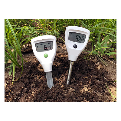| センサーを土壌に直接突き刺しpHを測定。 pHを測定することで作物にとって育ちやすい環境を知るのに役立ちます。 さらに土壌以外の溶液(液体)も測定できるため水耕栽培の養液管理でも活躍します。 ![]() ■特長 ●土壌の測定に適したpH電極を採用。円錐状の電極先端部とオープンジャンクションの構造により土壌への突き刺しやすさはもちろん、付着物による詰まりを最小限に抑え洗浄のしやすさも実現。 ●取り外し可能なPVDF(ポリフッ化ビニリデン)製の電極スリーブ。電極の洗浄を行いやすく必要であれば内部液の補充も行えます。 ●初回分のpH標準液と電極洗浄液、電極保存液が付属。校正と測定後のメンテナンスに必要なものはすべて揃っていて安心です。 ![]() ●自動温度補償(校正時に自動で温度補正を行います。温度表示機能はありません。) ●ボタン1つの簡単操作 ●見やすく、大きく画面表示 ●ボタン電池1個(CR2032型)で約1000時間の継続使用が可能。 ●校正を行った標準液を画面表示 ※土壌に突き刺し測定する際には必ず水分が必要になります。土が乾燥している場合、精製水や蒸留水で土壌を十分に湿らせませんと安定した数値は検出されません。 ■用途 ●ほ場の土壌診断、農業・水耕栽培での土壌や養液管理、ロックウールのpH測定、造園(植木・芝・草加)、ゴルフ場での芝生の管理、園芸など ●具体的な作物や植物として、いちごやトマト・ミニトマト、アスパラガス、トルコギキョウ、キノコの培養、茶畑の管理など ![]() ※画像左側がMF2PH-981030H、右側はEC測定器のMF2EC-98331NH ■仕様