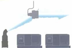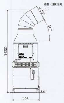 | ■特長 ●加湿空気を伴った霧を地上高4mほど吹き上げる事ができるので、循環扇(MF34W-47F)を併用する事により、工場全体 の加湿を行う事ができます。 ●超音波振動子を使わない独自の構造により、メンテナンスが楽になります。 ●20㍑の水タンク内蔵、また外部よりの自動給水が可能です。 ●送風量は無段階変速が可能です。 ●タイマ内蔵で自動運転可能です。 ●単相100Vで動作できます。 ■用途