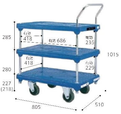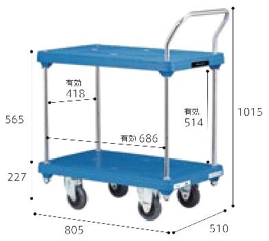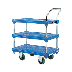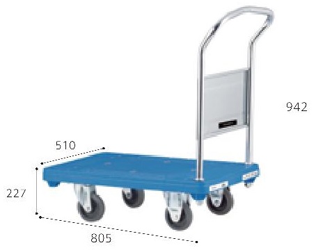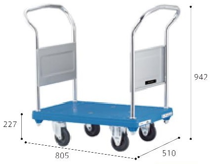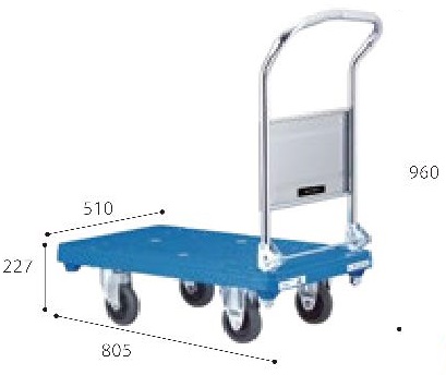 メーカー独自のリブ配置やハンドルをしっかり支える設計になっており、しっかりと荷物を支えるプラスチック製台車 軽量化、耐衝撃性、耐腐食性、耐久性のある一体成型 最大重量:300kg 積載面:510×805mm |