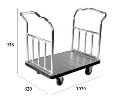 | ■特長 ●エントランスカート お客様を出迎えるに優しい湾曲フォルムのホテルカート。ハンドルの湾曲は人間工学ハンドル「ユニバーサルデザインハンドル」を実装しており、片手押しや、滑らかなカービングも可能です。 ●裏方作業 ホテルやレストラン・催事場を運営する中でお客様に見える場所は華やかな一方、裏方は高いサービスを実現するために様々な運搬車などを駆使してサービスの提供を行なっております。マットを外すことで堅牢な台車に早変わりするため、もうたくさんの台車で裏方を狭める必要はありません。出入り口にマットを置いておけば日々の流れの中で柔軟にお客様と裏方の二役活躍してくれます。 ![]() ■寸法図 ![]() ■タイプ
