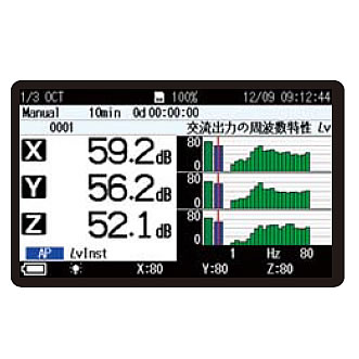 振動レベル計は、JIS C 1510:1995、JIS C 1517:2014に適合します。 振動レベルおよび振動加速度レベルの瞬時値や時間率レベル、時間平均レベル、最大値、最小値を3方向同時に測定します。 振動測定マニュアル※にも対応しています。 ※公益社団法人日本騒音制御工学会環境振動評価分科会作成 |