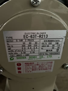 | 中古昭和電機電動送風機/品番 EC-63T-R213(100V) 問い合わせ番号 Z-0893-1 |