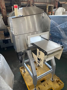 | ■特長 ●簡単操作と高感度の両方を実現 ・オート設定時に商品の特性(ドライ、ウェット、アルミ蒸着包装) を自動判定します。 ・画面のガイダンスに従って、コンベア上に商品を5回流すだ けでオート設定は完了です。 ・新たにDSP技術を採用して実用検出感度をUPしました。 (当社比:最高25%UP ウエット品) ●安心して使える各種機能を搭載 ・検出動作が正しく行われているか一定時間ごとに疑似金属信号を発生させてセルフチェックします。 ・不良品の発生時間、運転状況、統計データを運転中でも画面上で確認できます。 ・オートトラッキング機能で商品の品温、水分量などの状態変化にも最適な検出レベルを保ちます。 ●ライン環境に柔軟に対応できます。 ・指示器の操作だけでベルト速度を任意(10~90m)に変更できます。 ・コンベアの流れ方向(右、左)も指示器の操作で変更できます。 ・外部機器とのインタフェースを標準装備しています。 ●HACCP対応 ・ゴミの溜まりにくいシンプルなフレーム構造にしました。 ![]() ■外観図 ![]() ■仕様