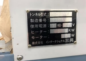 中古シュリンクトンネル 品番 IST-770EF 問い合わせ番号 Z-0895-1 |