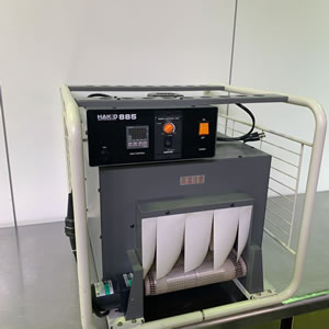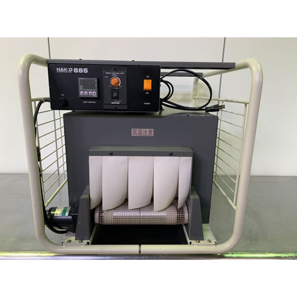 メッシュベルトのコンベア使用で小物のシュリンク包装に最適、温度とコンベア速度の調整も可能です。 | 中古ハッコーシュリンカー 品番 885 問い合わせ番号 Z-0897-1 |