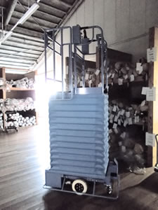 もう少しまで、あと少し。 乗ったままで、手が届く! 自走式ピッキングリフター。 |