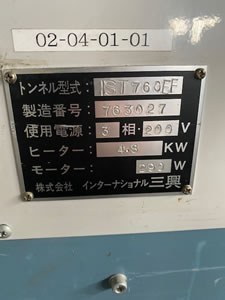 中古インターナショナル三興シュリンクトンネル/品番 IST-760EF